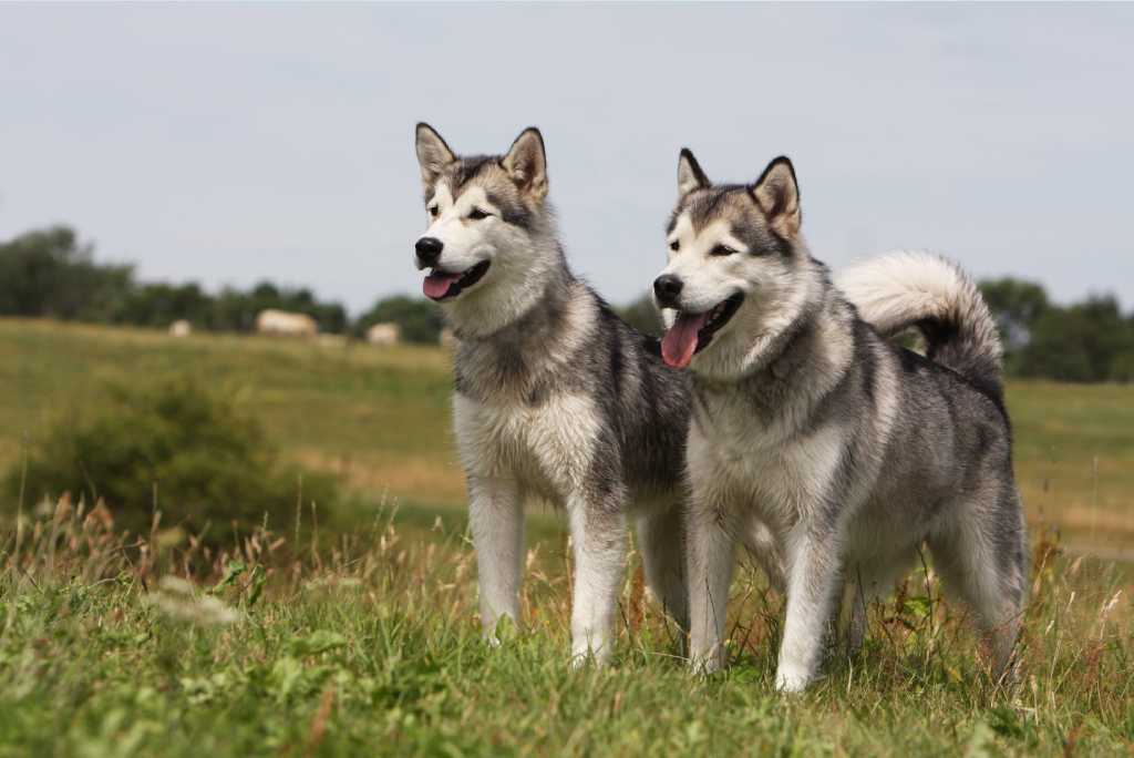 Маламутите от Аляска, които тежат между 34 и 38 кг като възрастни, са отглеждани, за да пренасят големи товари на шейни по заснежени терени. Тези издръжливи и лоялни кучета имат гъста козина, която ги топли в студеното време. Маламутите може да са волеви, но са интелигентни и трудолюбиви.
